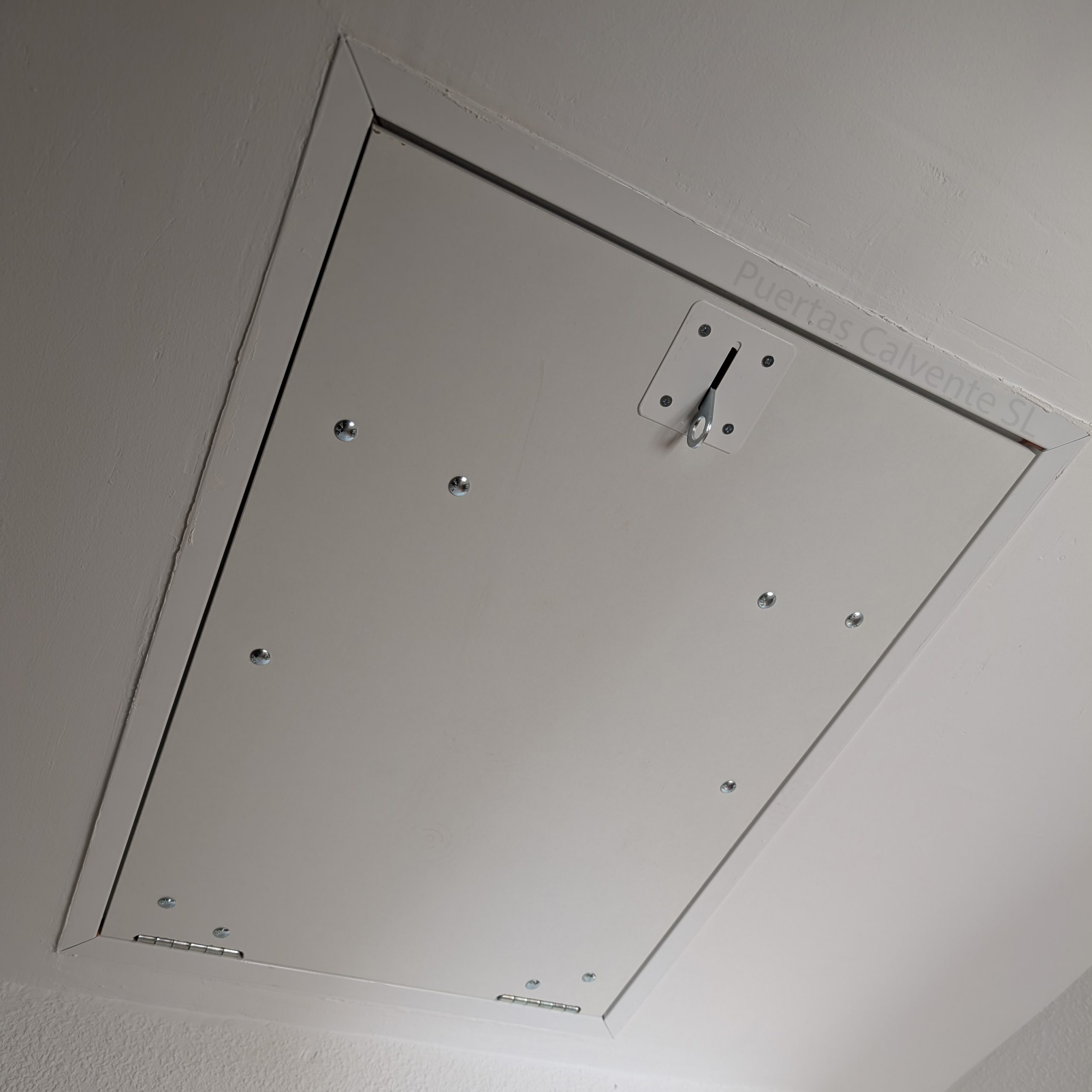 Escalera Escamoteable LX Lacada Metálica Altura 300cm fabricada en acero lacado y tapa en melamina blanca. Se recoge totalmente encima del cajón al cerrarse, dejando libre el espacio de la planta superior. Es necesario prever un espacio para la correcta apertura de la misma.